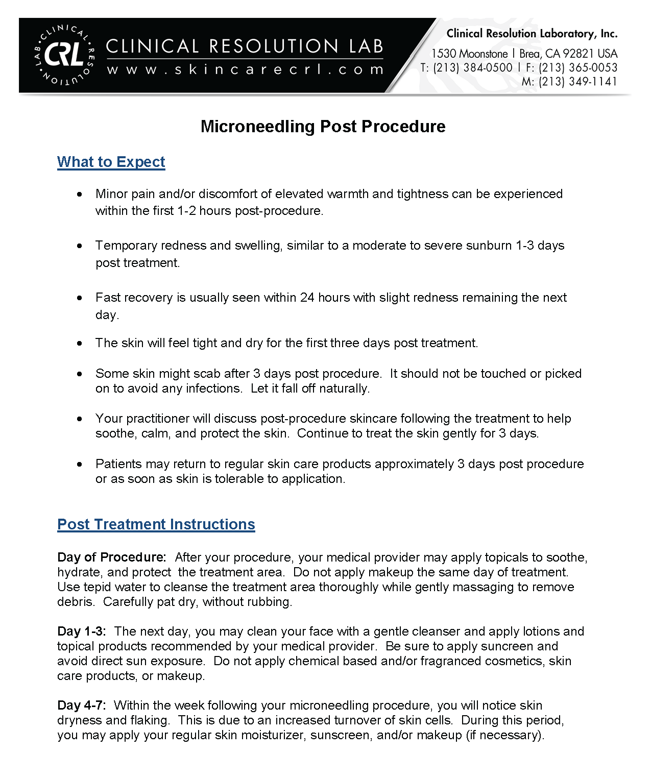Please refer to these instructions for your microneedling treatment. The microneedling consent form is below.